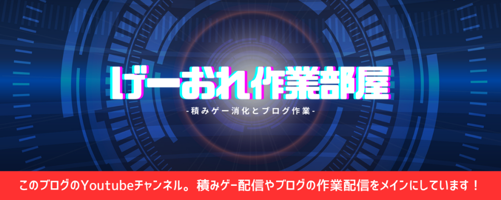 よくある感動するゲーム〇〇選!とか記憶を消して遊びたいゲーム〇〇選!とかではなく、「ゲームブロガーの日常」のようなスタンスでゆるく更新や配信しようと思うので、気がむいたらぜひ遊びにきてもらえたら嬉しいです。
